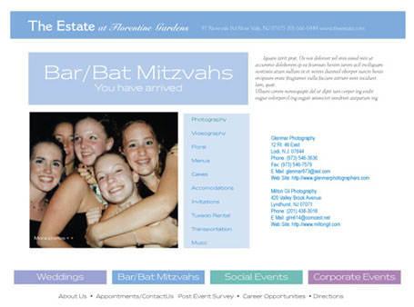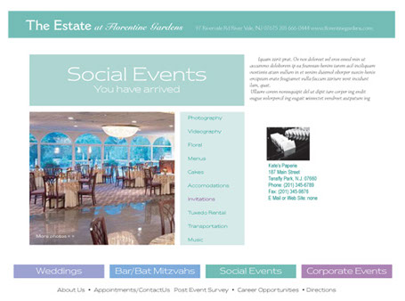 Web site design for The Estate at Florentine Gardens, wedding/party venue. (layout & design only)go back